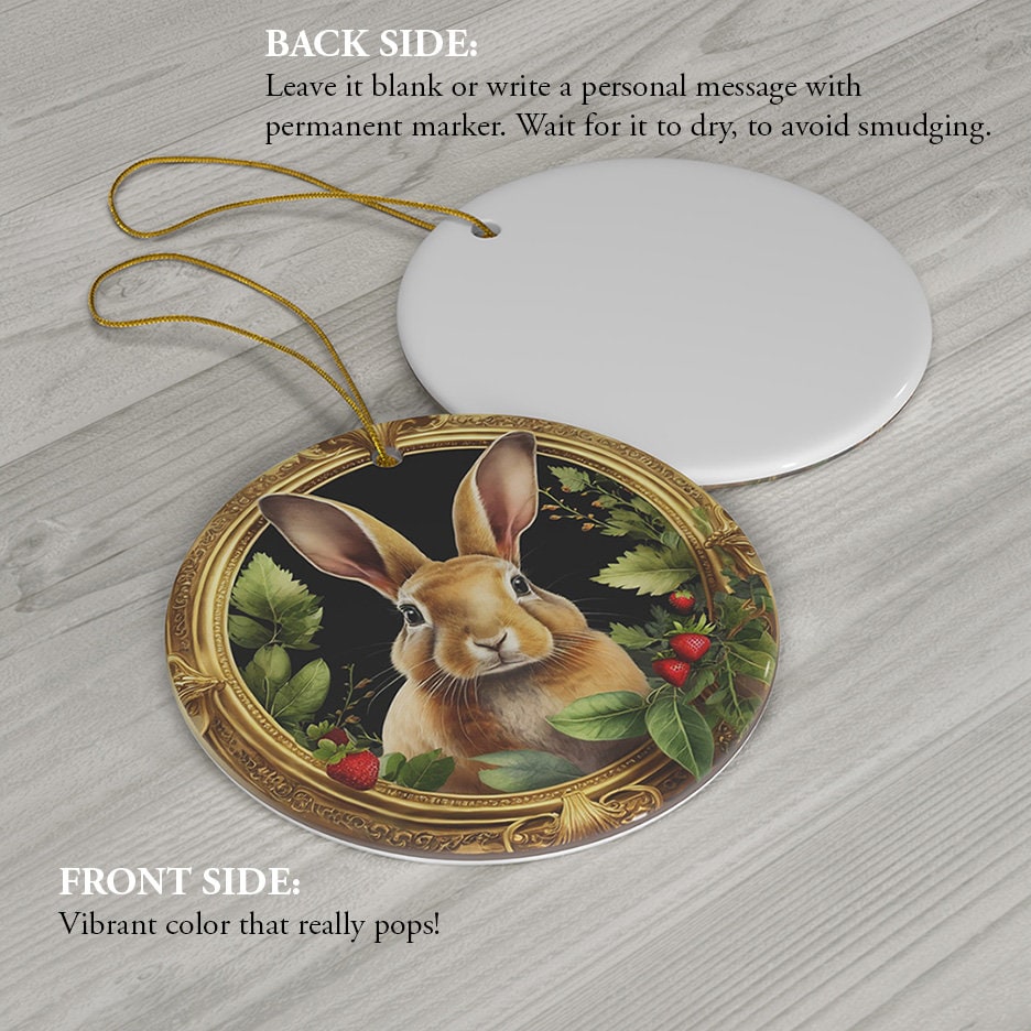 From a mixed media collage by Eris Klein. Hang it up in your window or use it as an elegant Christmas tree ornament to celebrate the holidays. These custom-made ceramic ornaments make great gifts for bunny-lovers and can be used year round.