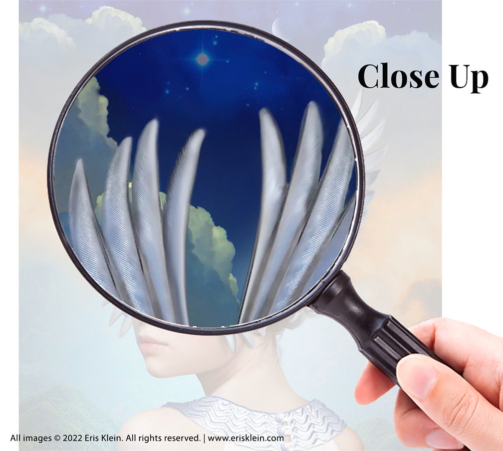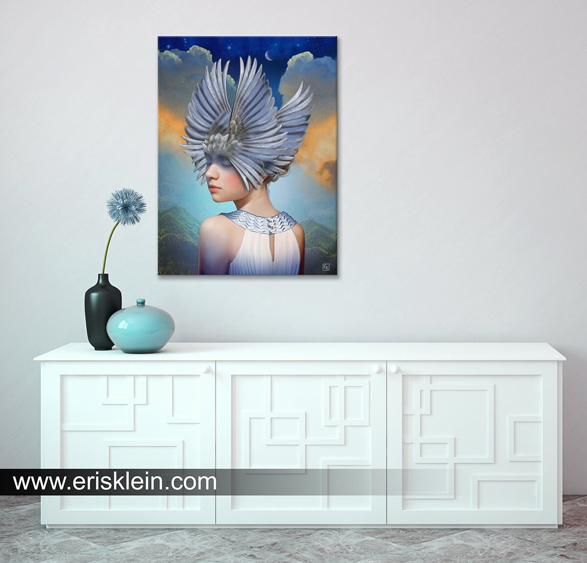 Limited Edition Giclee Art Print: Wings of Grace - inspired by celestial dreams, angels, Valkyries and Maxfield Parrish skies