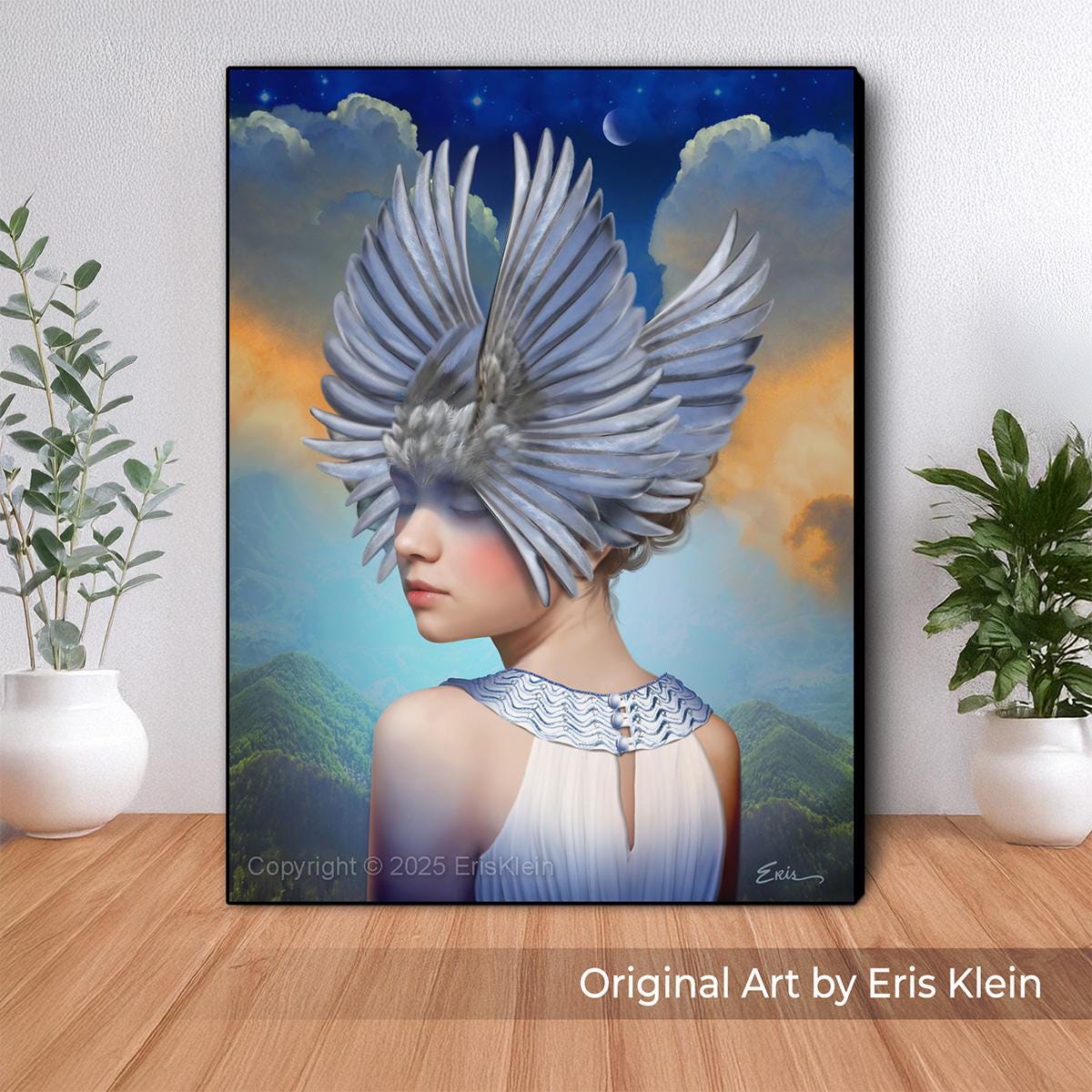 This print is from the Angel series, where Eris explores the higher realm of angels and beings of light. It includes, angelic guides, guardians, Valkyries, and more.