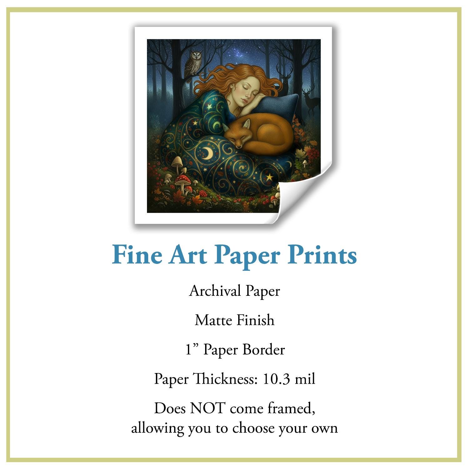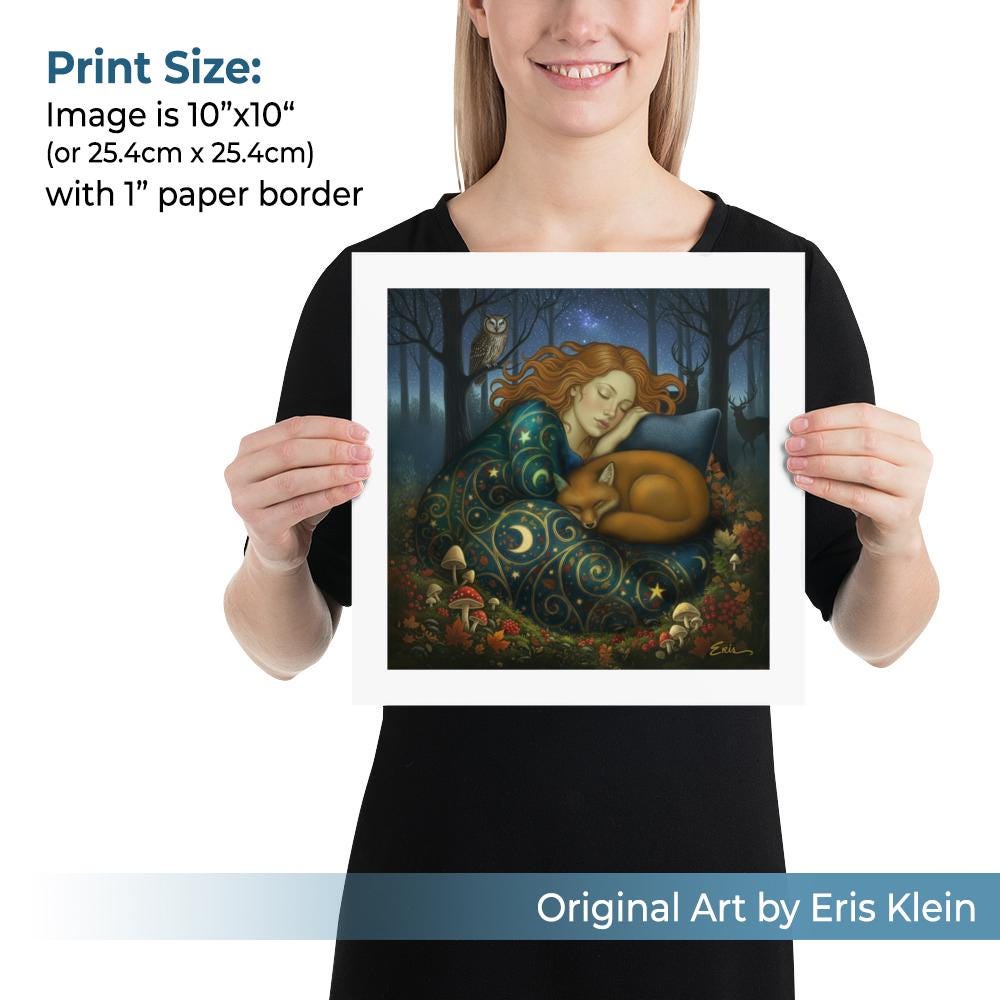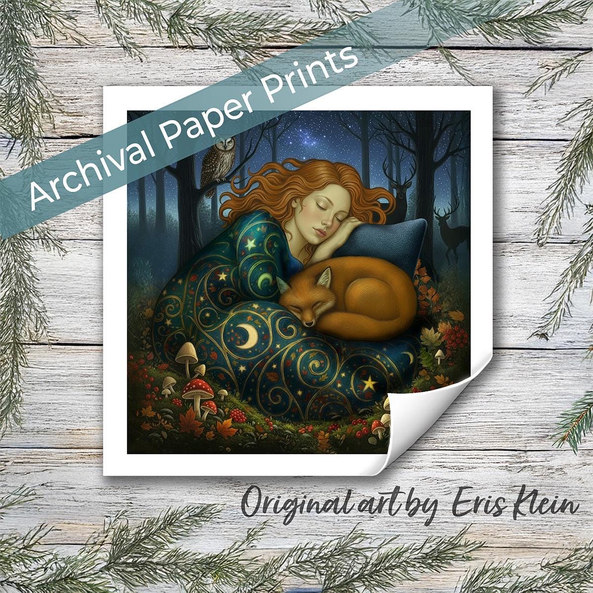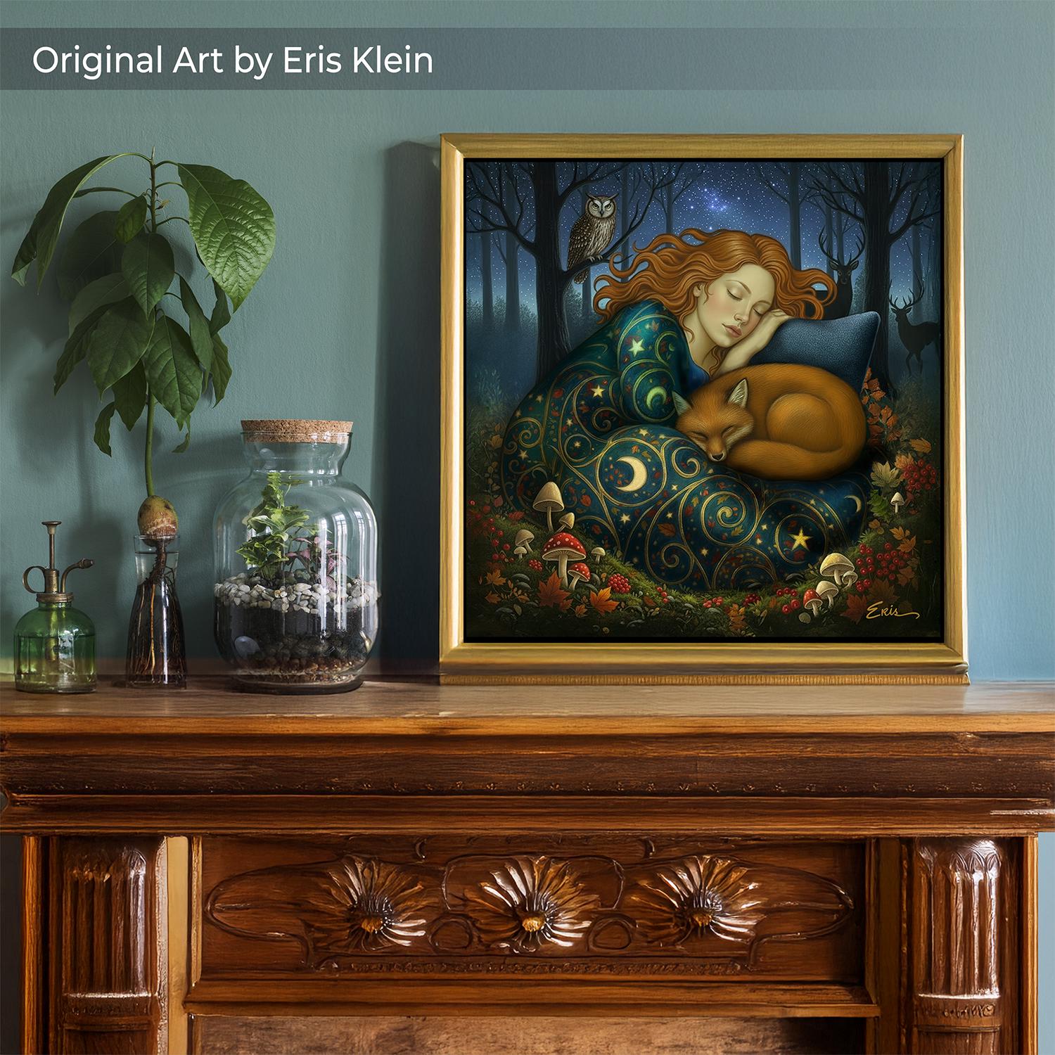 This print is from the Nature Dreamers series, where Eris explores women who dream with the Earth — inspired by ancient myths of Earth Dreamers who once created the world through imagination and light.